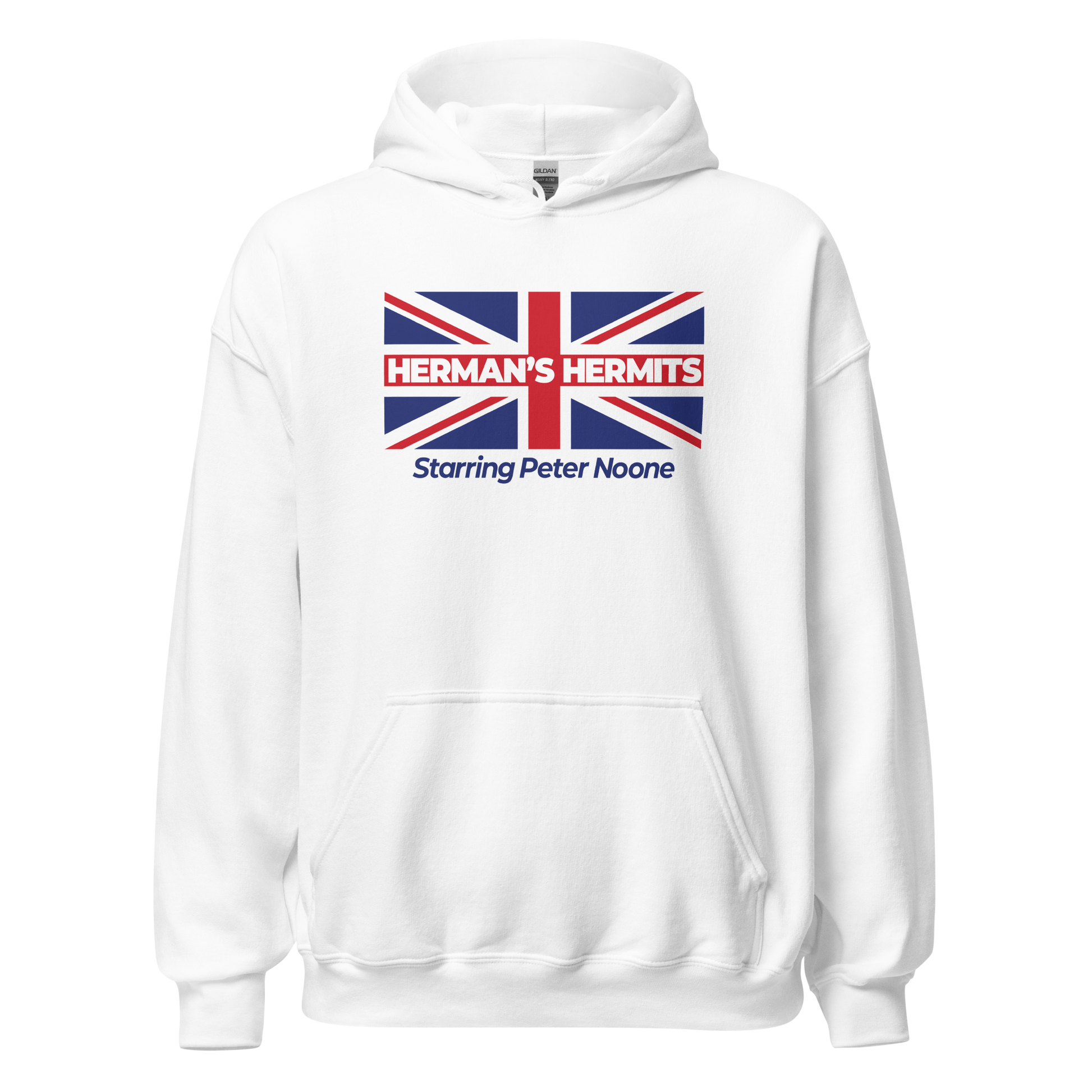 Step into style with our exclusive Hermans Hermits Flag hoodie! Crafted for comfort and style, this hoodie is your ticket to cozying up in trendsetting fashion. Emblazoned with the iconic band's logo, it's a must-have for every fan. Stay warm, stay stylish, and rock on with Peter Noone and Hermans Hermits!"